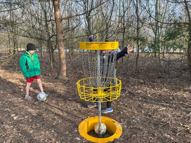 9 premium quality Disc Golf baskets & Foot Golf cups manufactured by Disc Golf UK