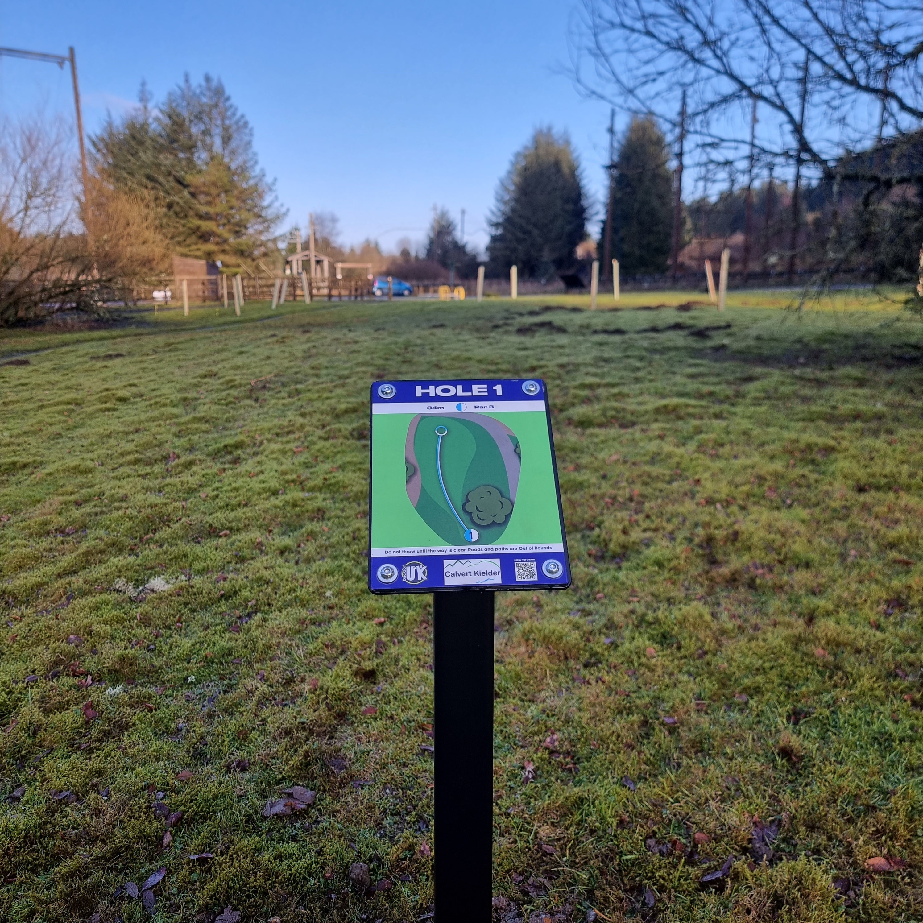 Permanent Ground Installation: Ideal for established or newly built disc golf courses needing a fixed tee sign post that looks professional and lasts for years.