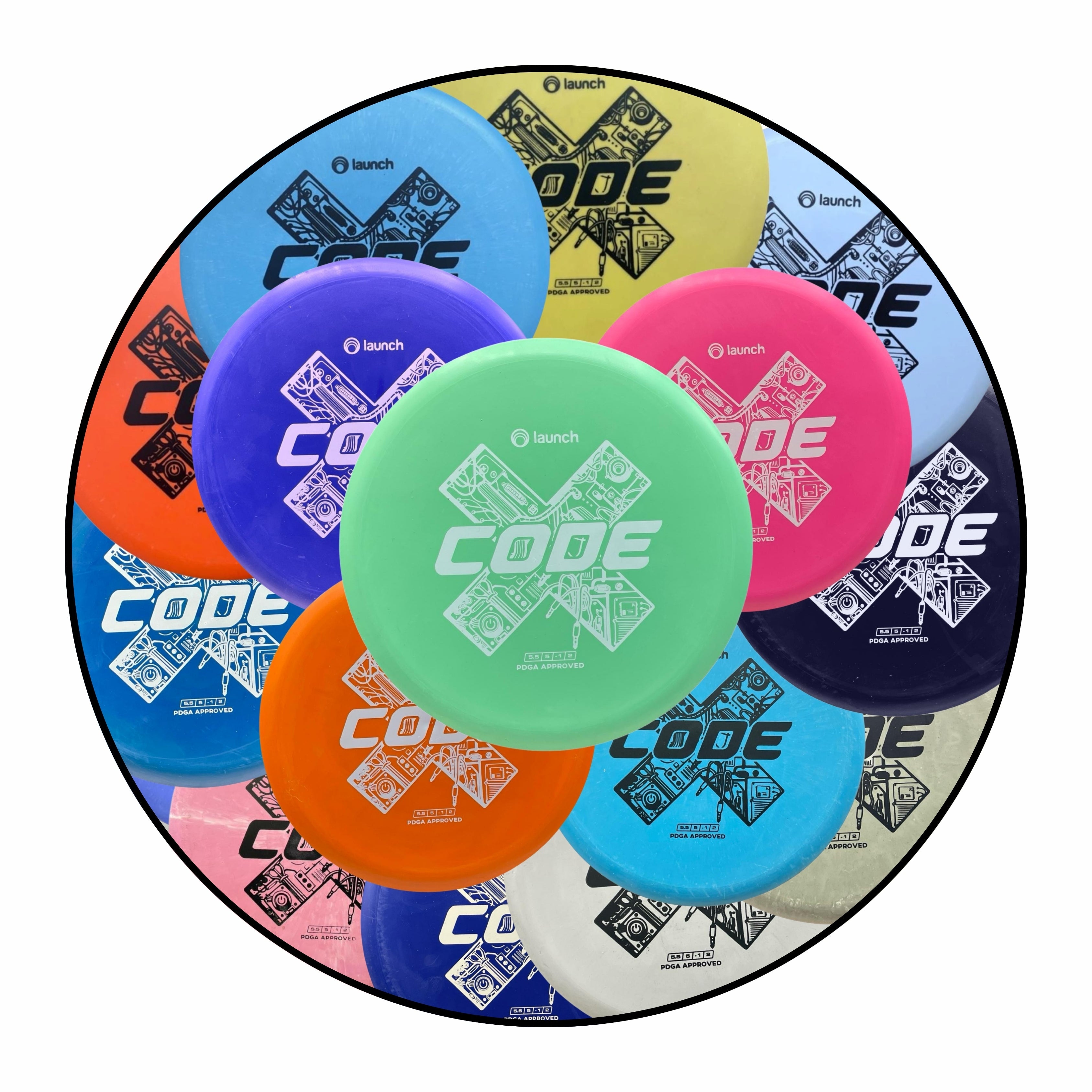 The Code is an all-purpose mid-range disc. When thrown with power, it will reach a surprising distance. It has a slight turn when thrown with high speed, superb glide phase with a reliable fade finish.