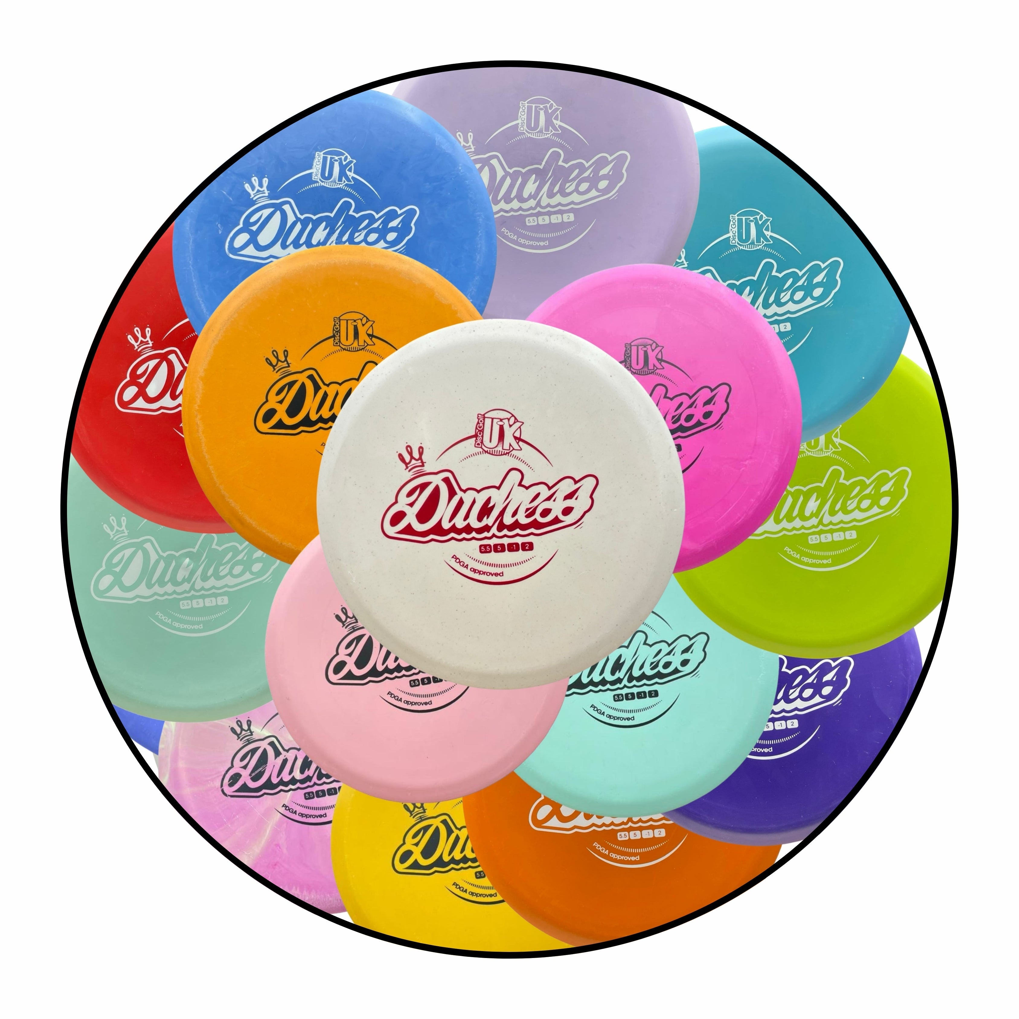 The Duchess is our midrange disc. She offers high-speed turn with a reliable fade, making her a versatile choice for players of all levels.
