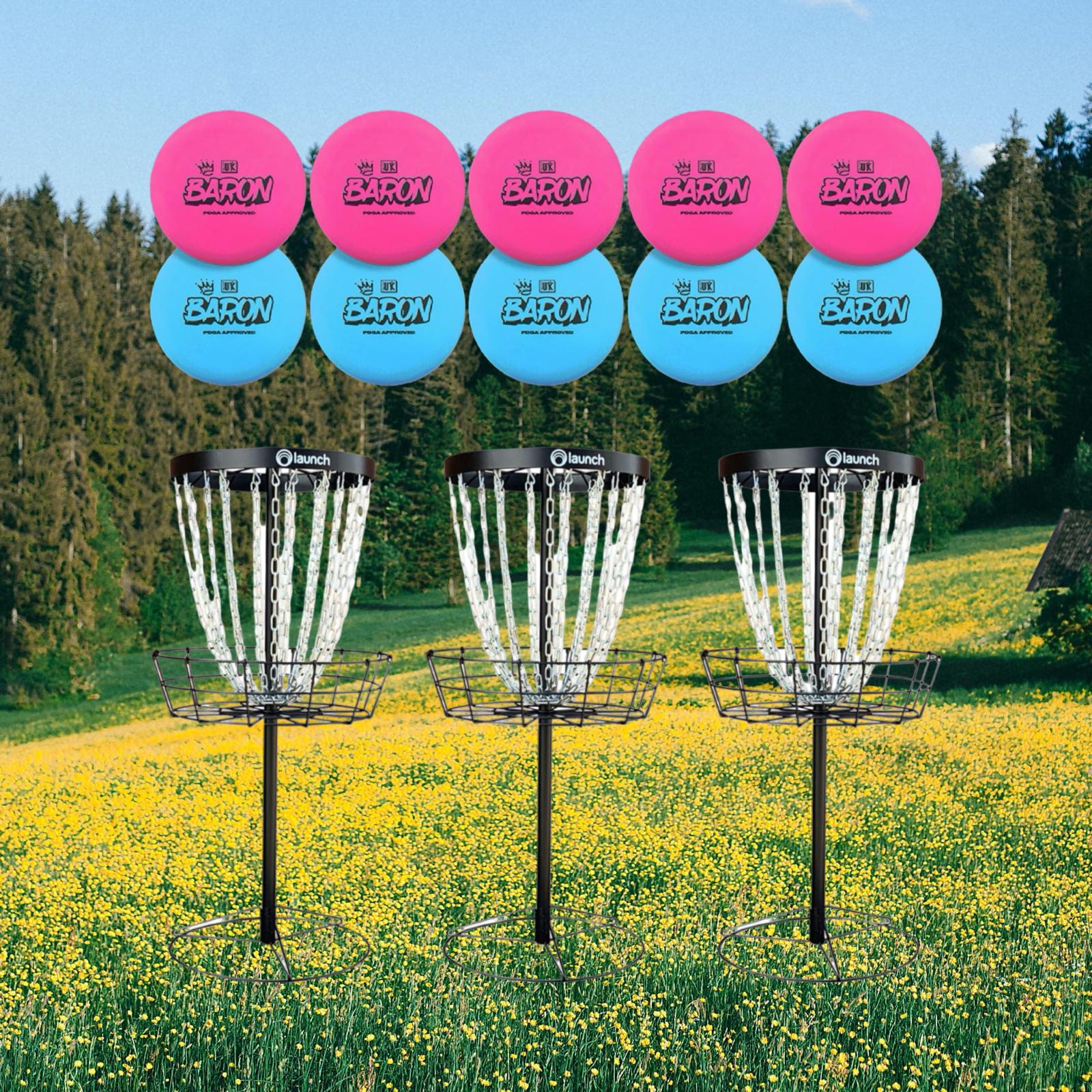 This is our 1st basket bundle which offers you the opportunity to setup your own personal 3 hole disc golf course at a GREAT price.