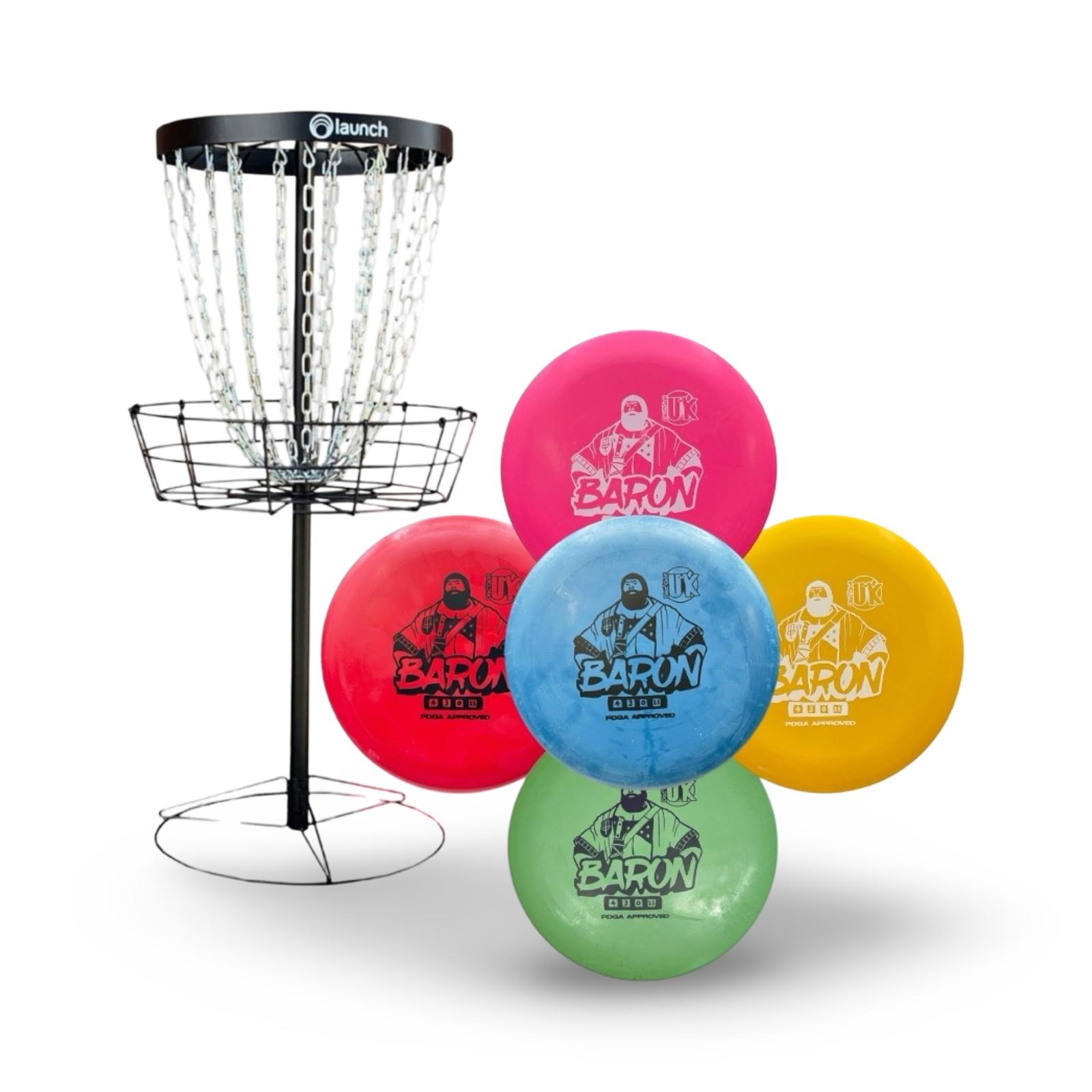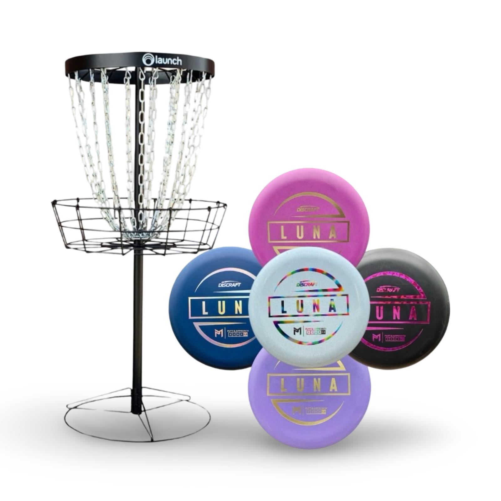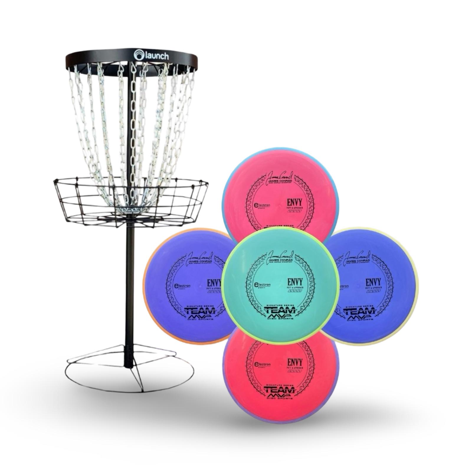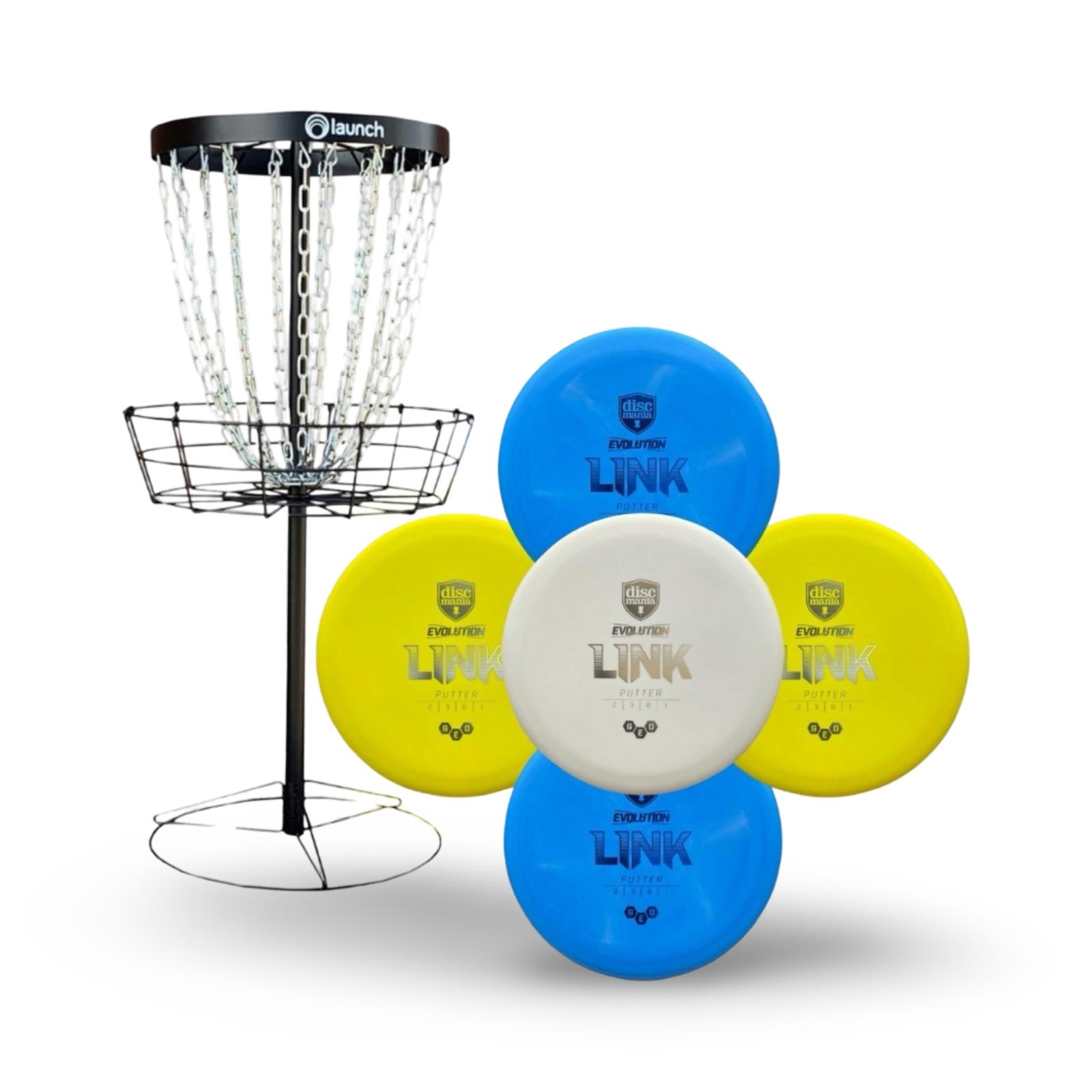 This set includes a Black Keep basket, a durable and portable target designed for serious practice, bundled with 5 of the most popular putters from some of the biggest names in disc golf: